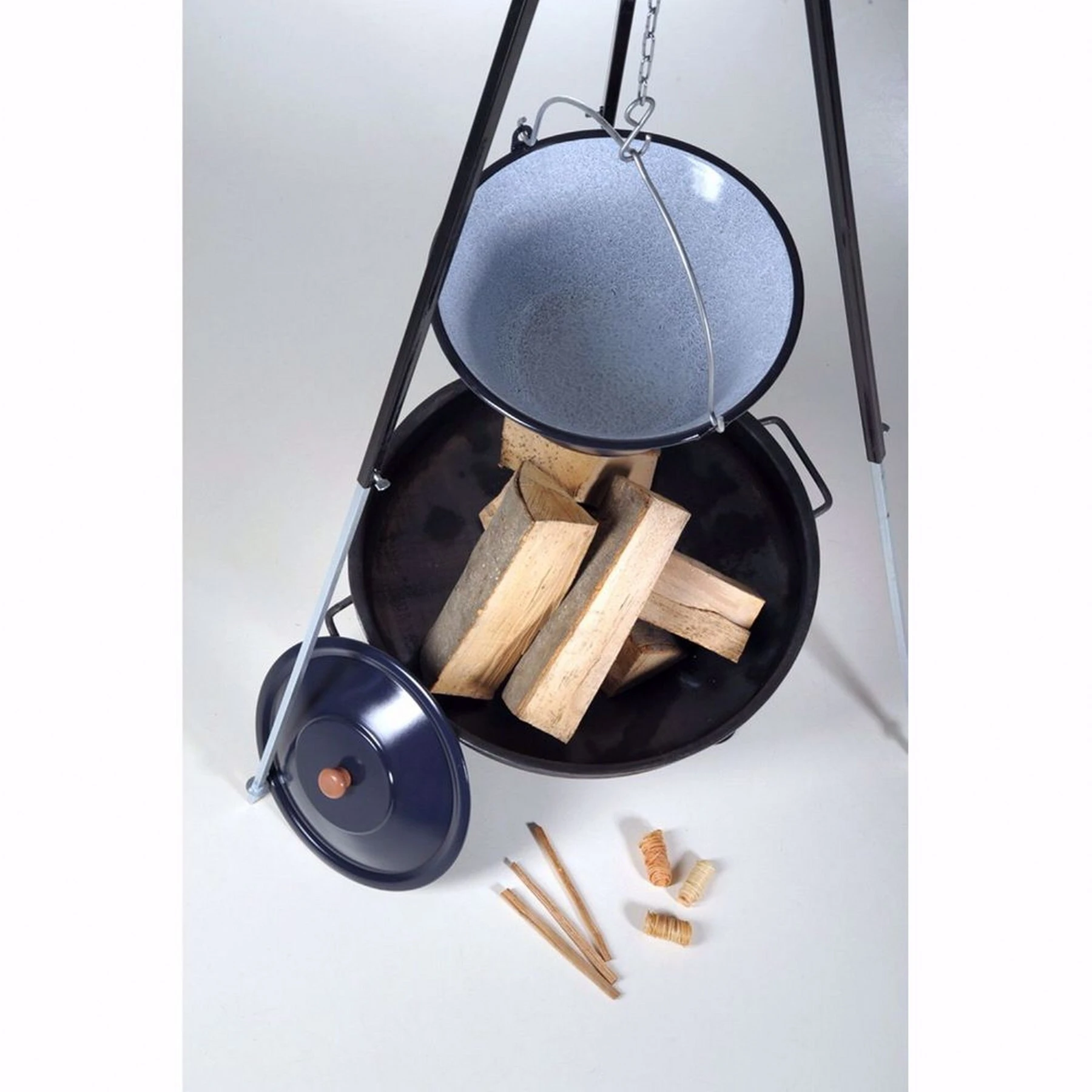 Gulaschkessel 14L + Dreibein-Gestell (180cm) + Feuerschale (55cm) + Kaminholz Buche