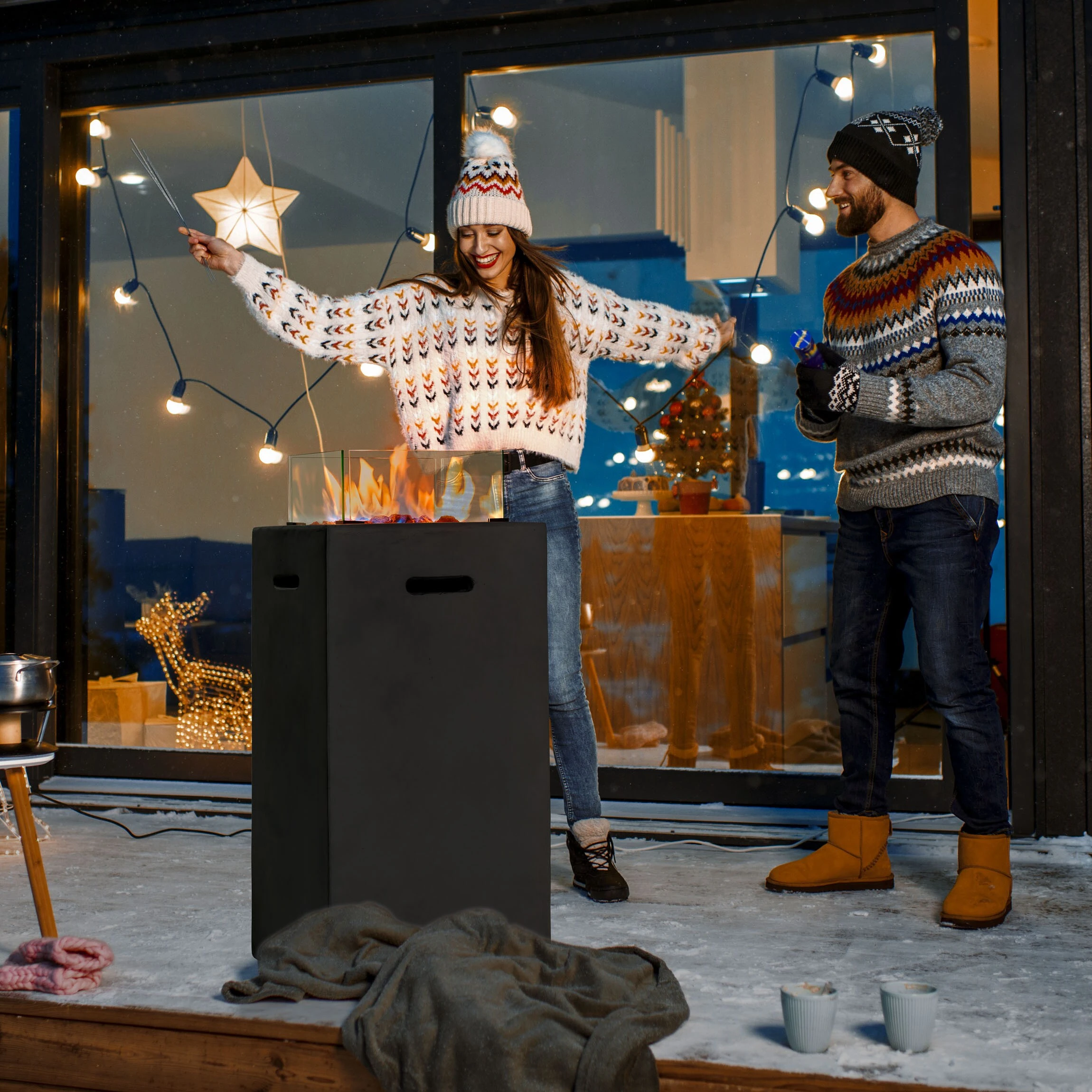 Genießen Sie Feuer und Flamme auf der Terrasse oder im Garten mit einer eigenen sicheren Feuerstelle. Auch auf einem größeren Balkon lässt sich die Gas Feuerstelle aufstellen, die überall eine glänzende Figur macht. Ihr elegantes, minimalistisches Design in grauer Farbgebung passt in jedes Ambiente. Der Tisch besteht aus regenresistentem, überaus hochwertigem Material. Ein Windschutz hält auch stärkere Böen ab, die Flamme erlischt nicht. Er besteht zur Sicherheit aus speziell gehärtetem Glas. Zusätzlich verleiht er der Gasfeuerstelle eine stilvolle Note.
