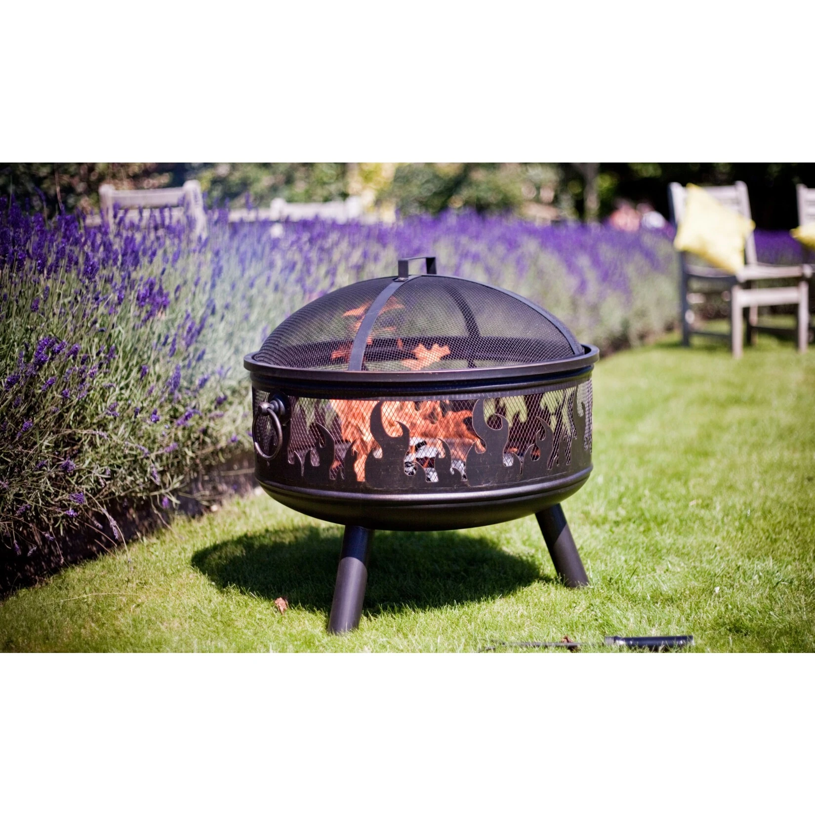Das dekorative Flammendekor am Rand macht diesen Feuerkorb zum Hingucker. Der im Lieferumfang enthaltene Grillrost komplettiert das Ganze. Dank der Funkenschutzhaube wird der Funkenflus vermindert.