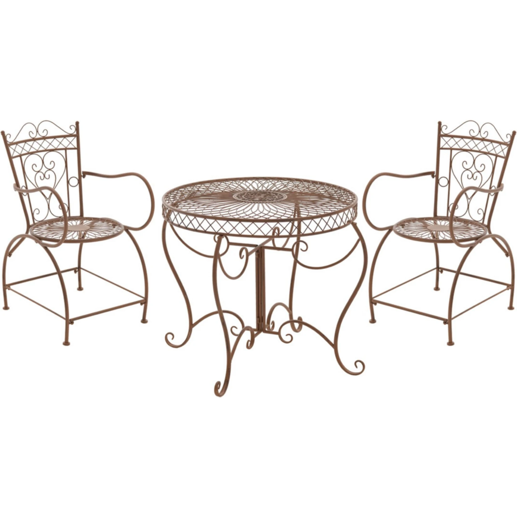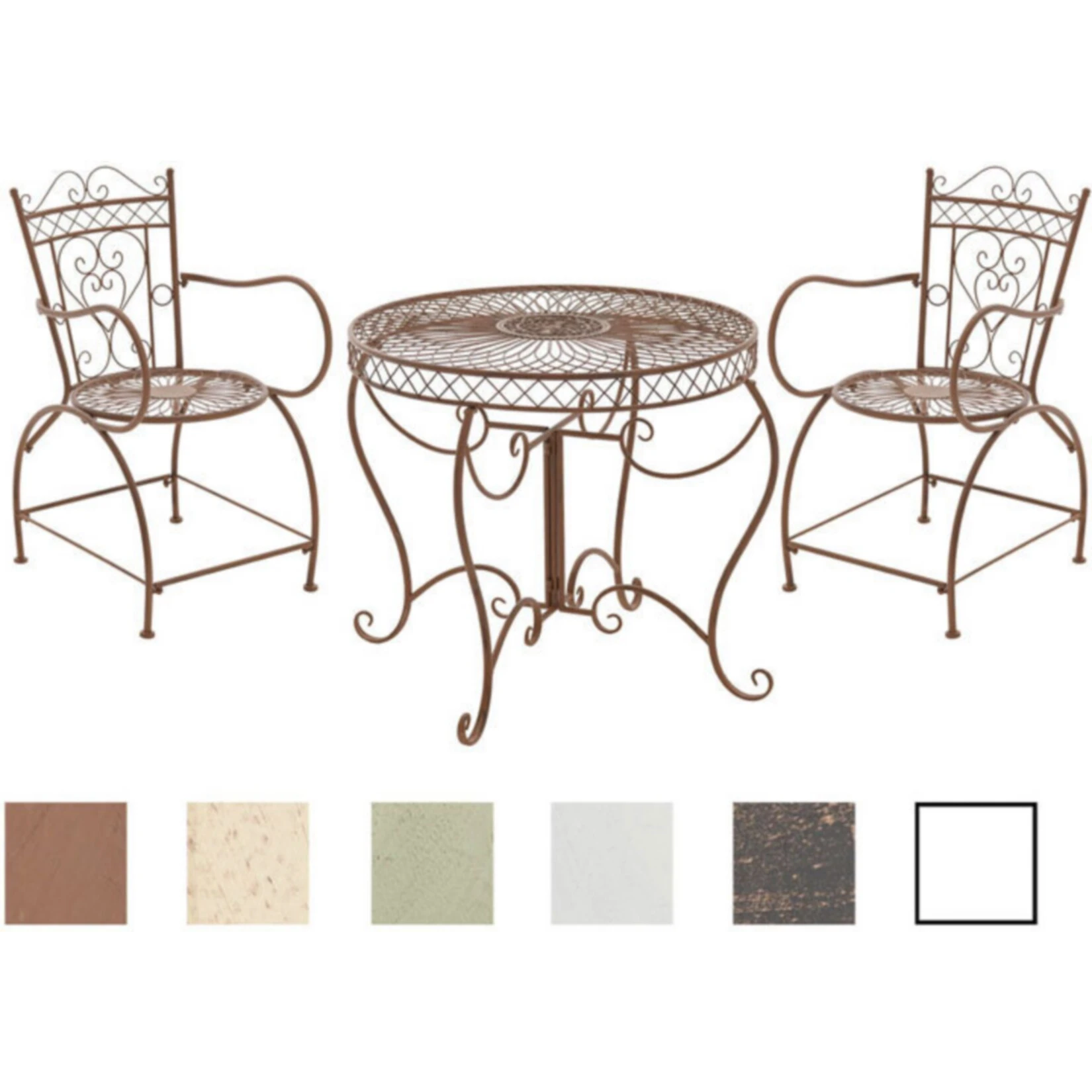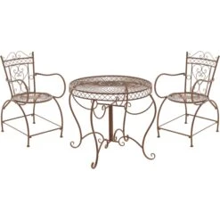 Diese wunderschöne Sitzgruppe in nostalgischem Design ist ein echter Hingucker auf jeder Terrasse und in jedem Garten. Sie beeindruckt in ihrer grazilen Form, wie auch in den liebevoll handgefertigten Details der Verzierungen. Sie eignet sich perfekt um Ihrer Gartengestaltung eine besondere Note zu geben und ist wie geschaffen Ihren lauschigen Lieblingsplatz im Garten mit ihrem Charme aus längst vergangenen Zeiten zu verschönern.