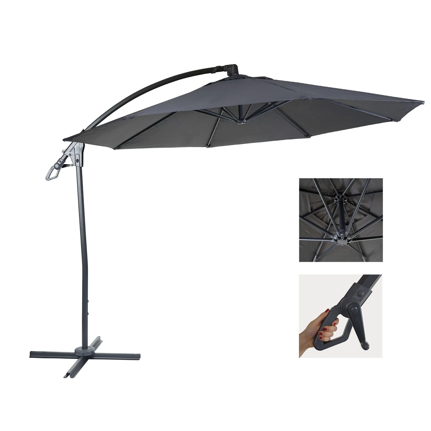 – Sonnenschirm mit Handkurbel und Bodenkreuz