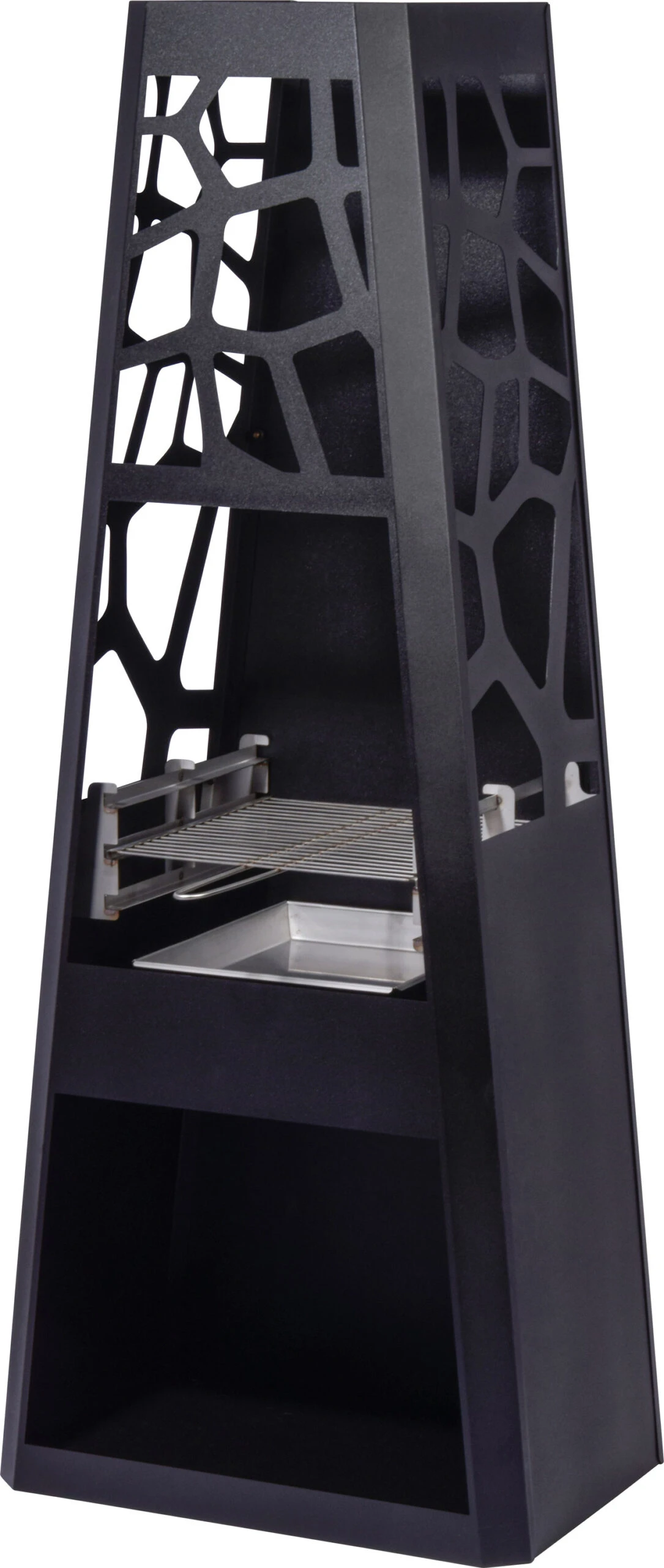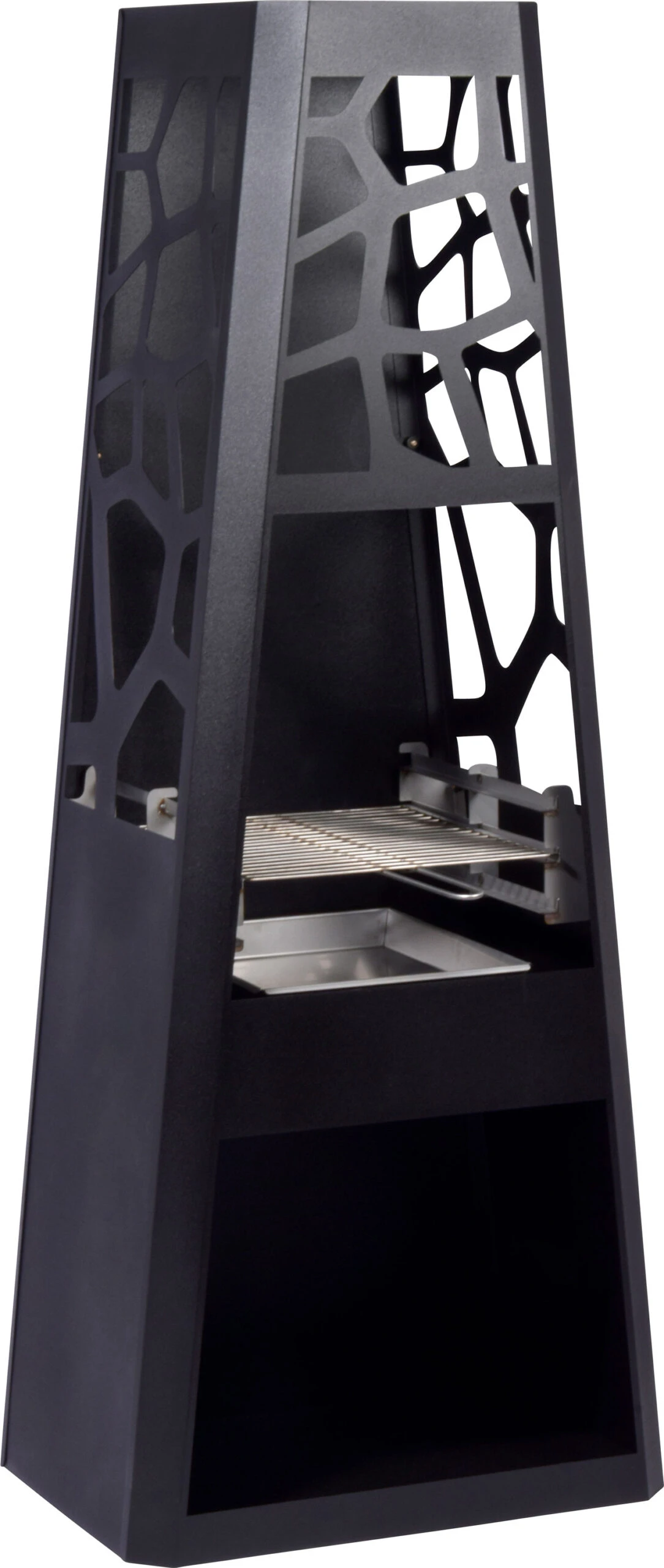 - Der Outdoor-Kamin verfügt über ein höhenverstellbares Grillrost und eine leicht zu reinigende Feuerschale, die bis 850°C hitzebeständig ist