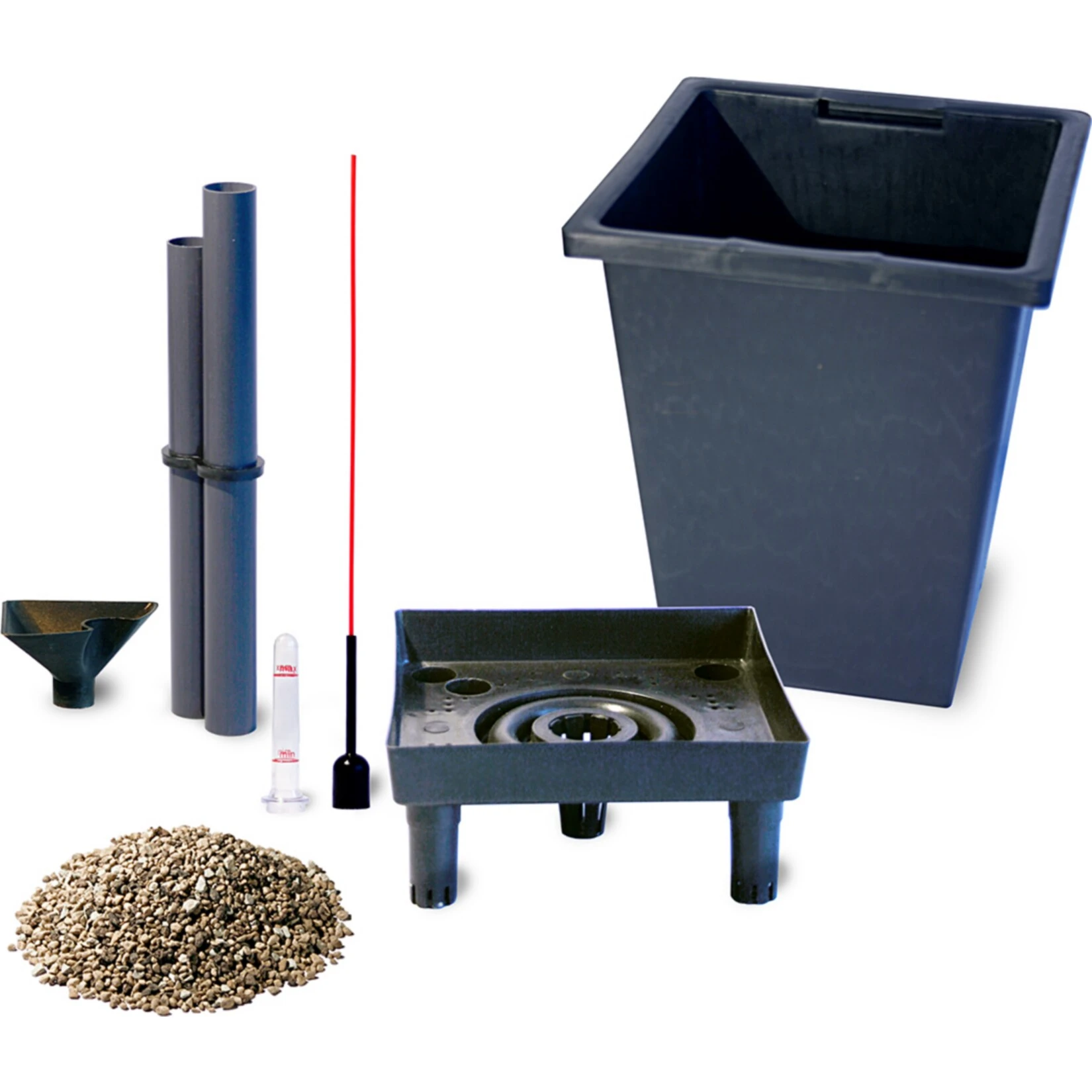 Dieses Set besteht aus dem Kunststoffkübeleinsatz, einem Zwischenboden, der Wasserstandsanzeige sowie Mineralsubstrat.