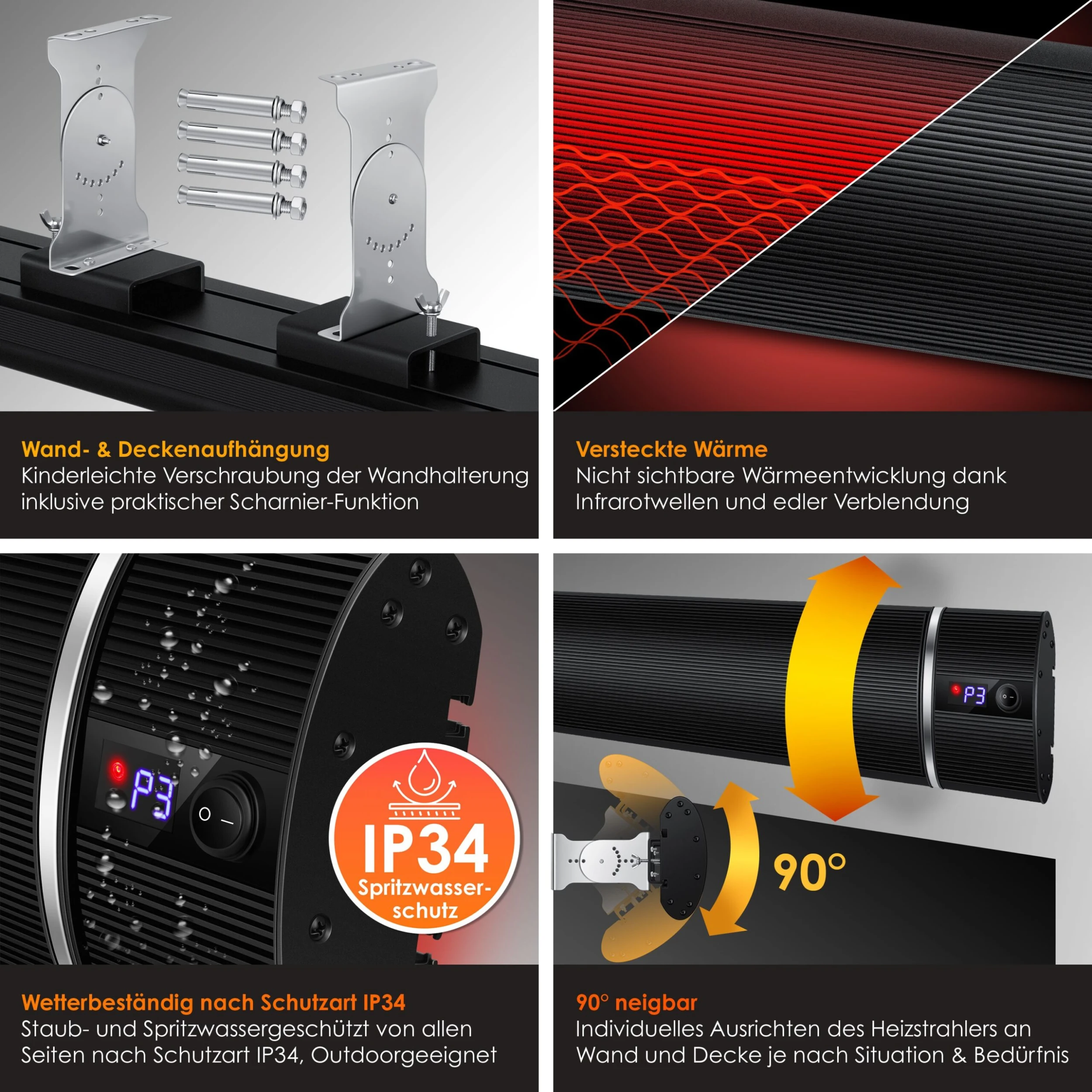 • Infrarot-Wärme: gezielte Wärmeabgabe an Personen und Gegenstände und nicht an die Umwelt