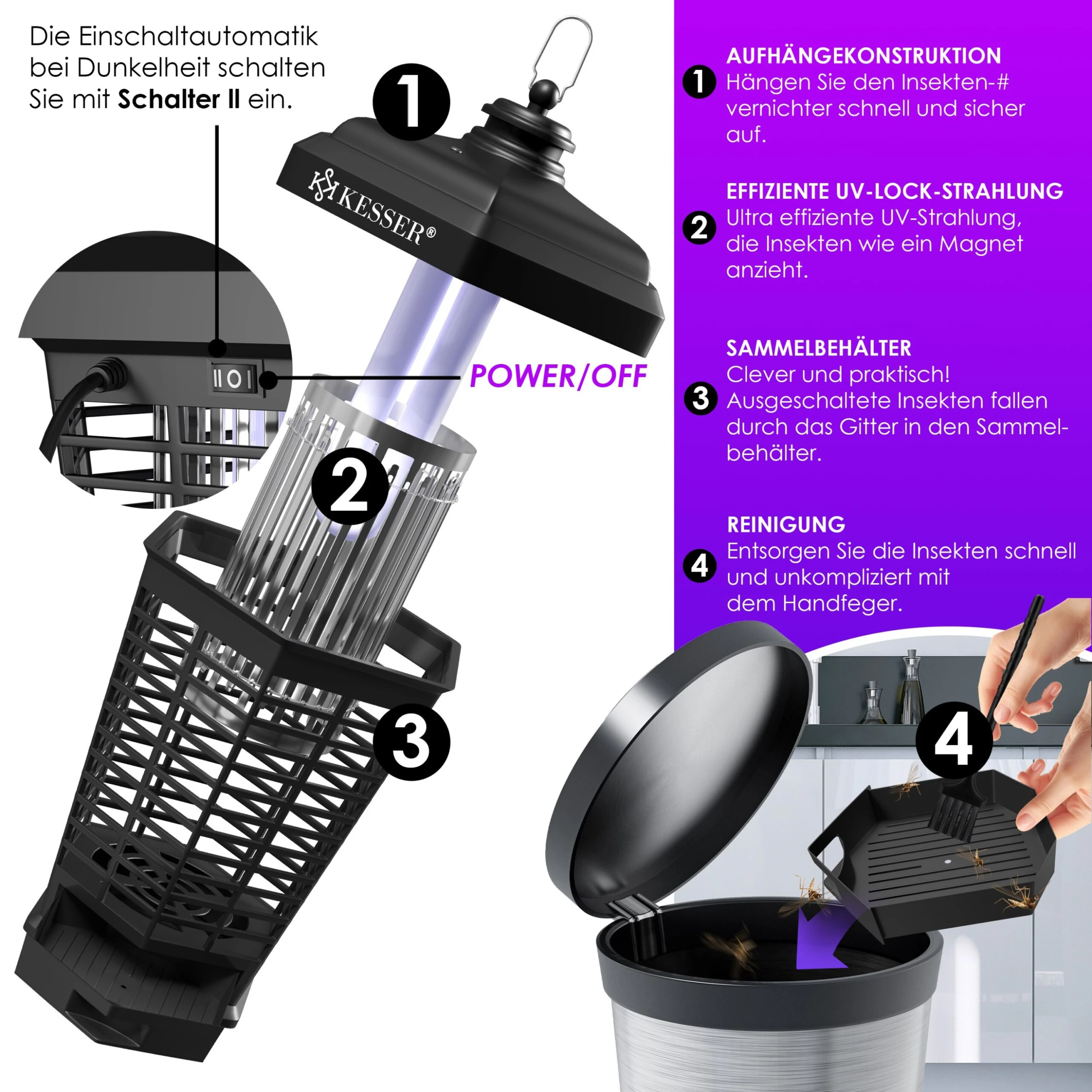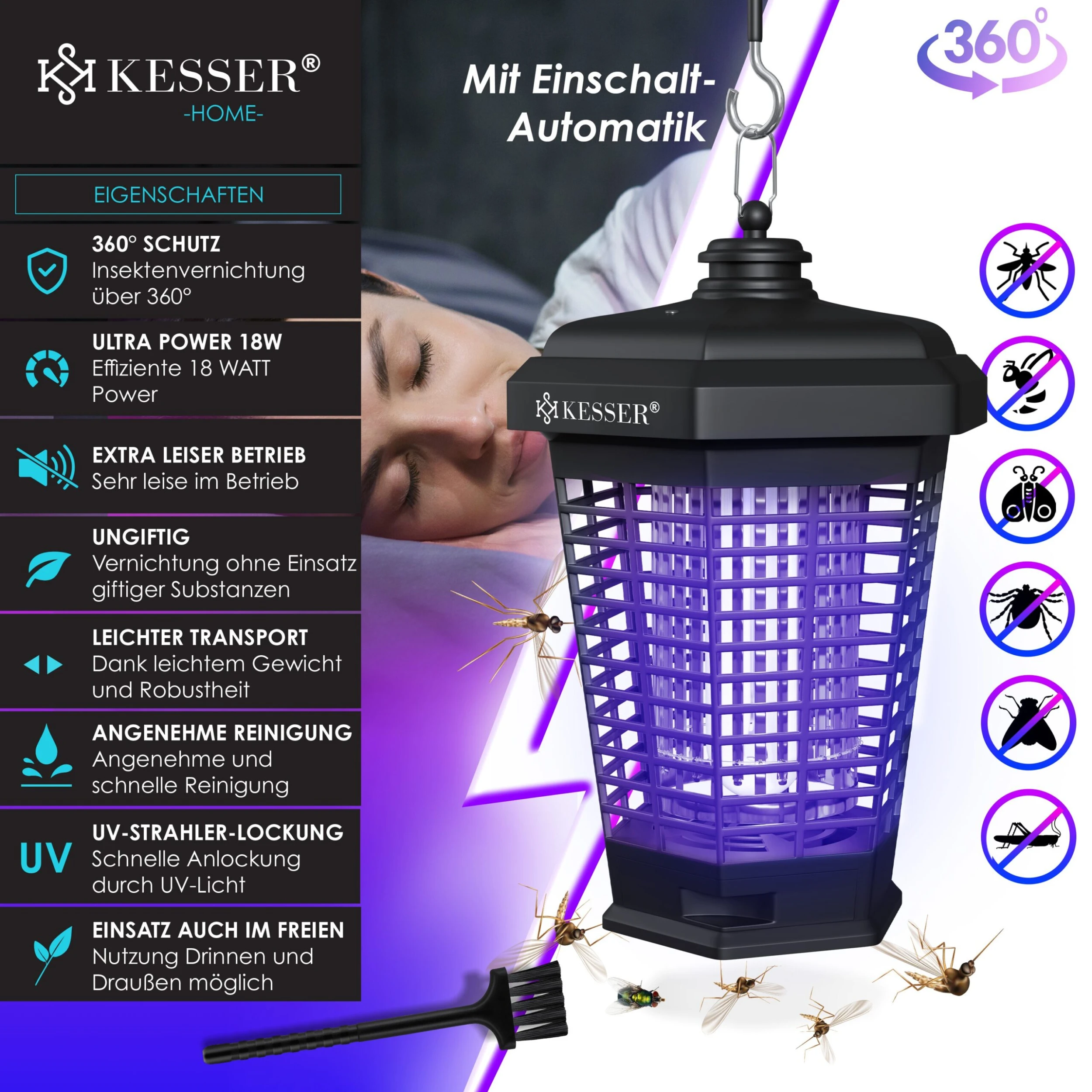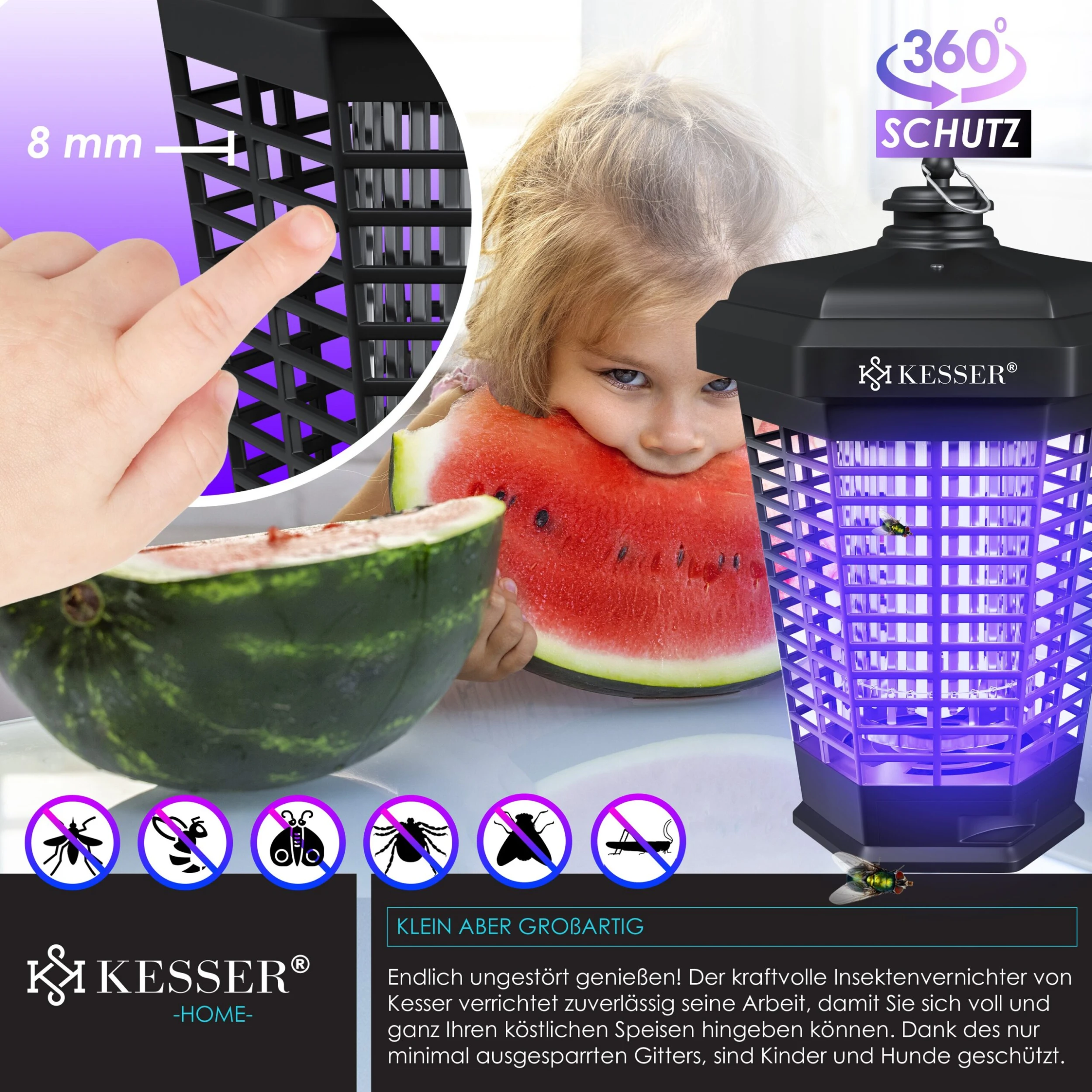 KESSER Insektenvernichter mit einem 360° Schutz, schnelle anlocken durch UV-Strahlung, extrem leise und frei von giftigen Substanzen, sicher für Kinder und Haustiere, Einschaltautomatik, leichter Transport dank geringem Gewicht, angenehme Reinigung