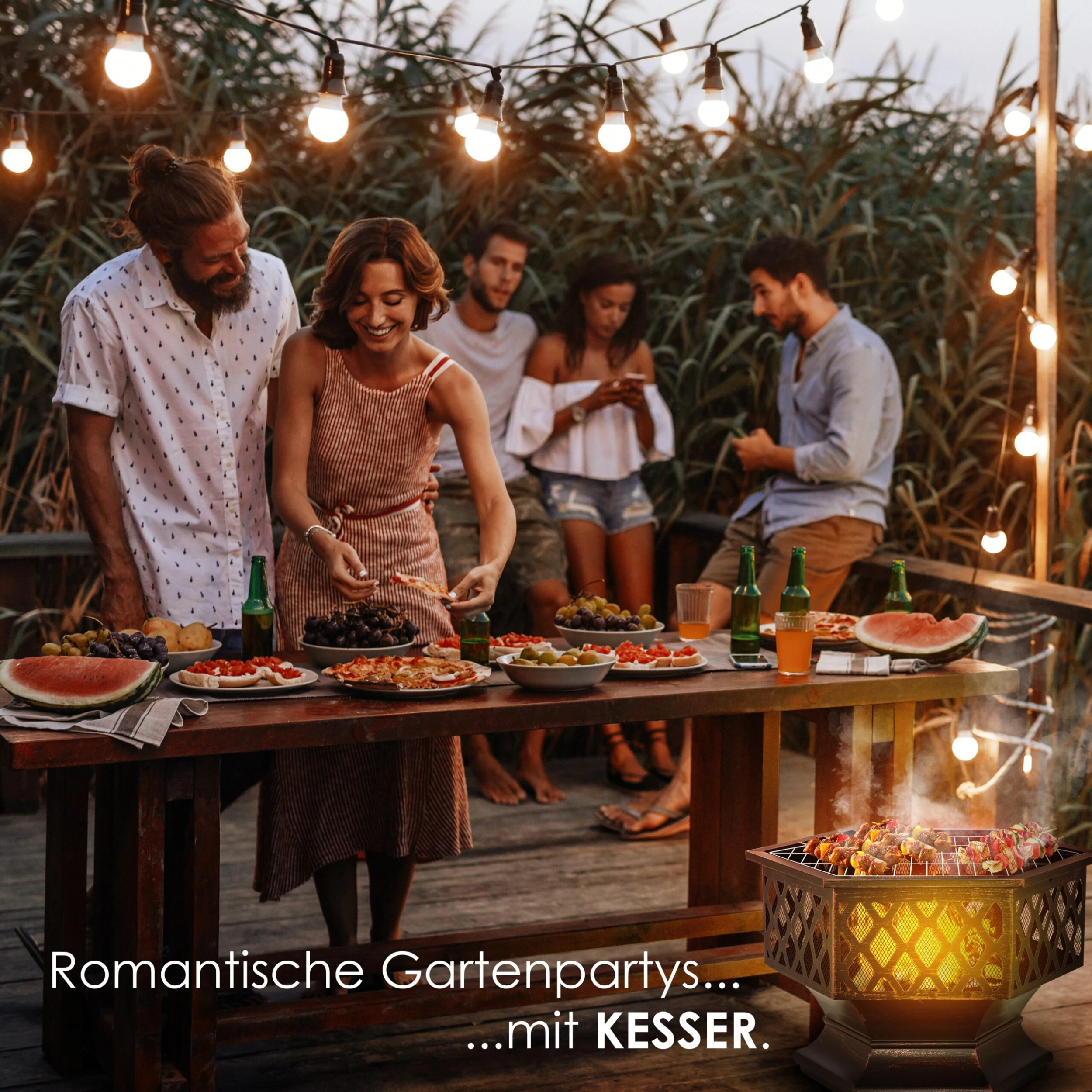 Romantische Gartenpartys – mit KESSER! Genießen Sie mit unserer Feuerschale lauschige und gemütliche Abende im Garten in romantischer Atmosphäre mit Freunden oder der Familie!