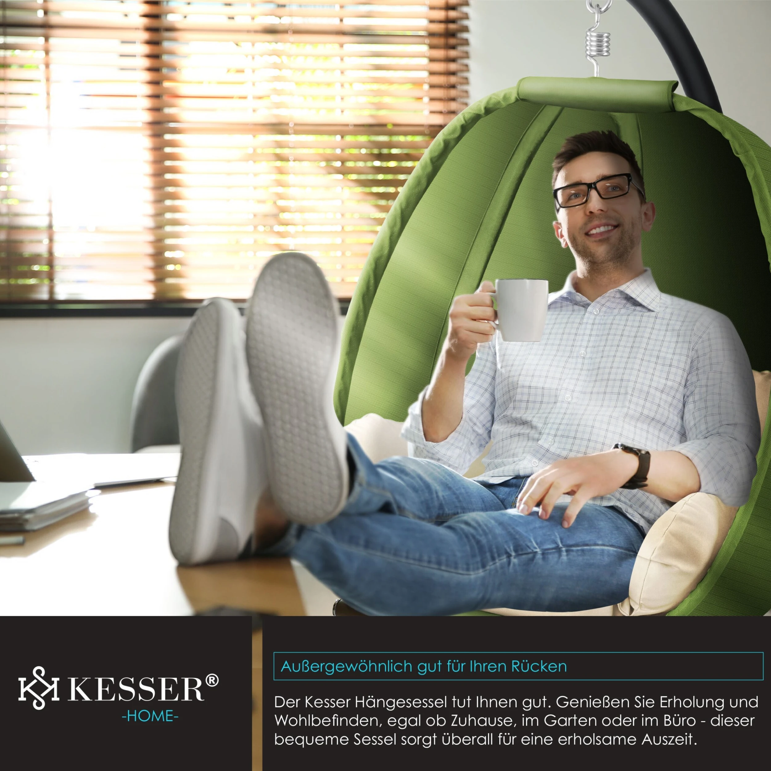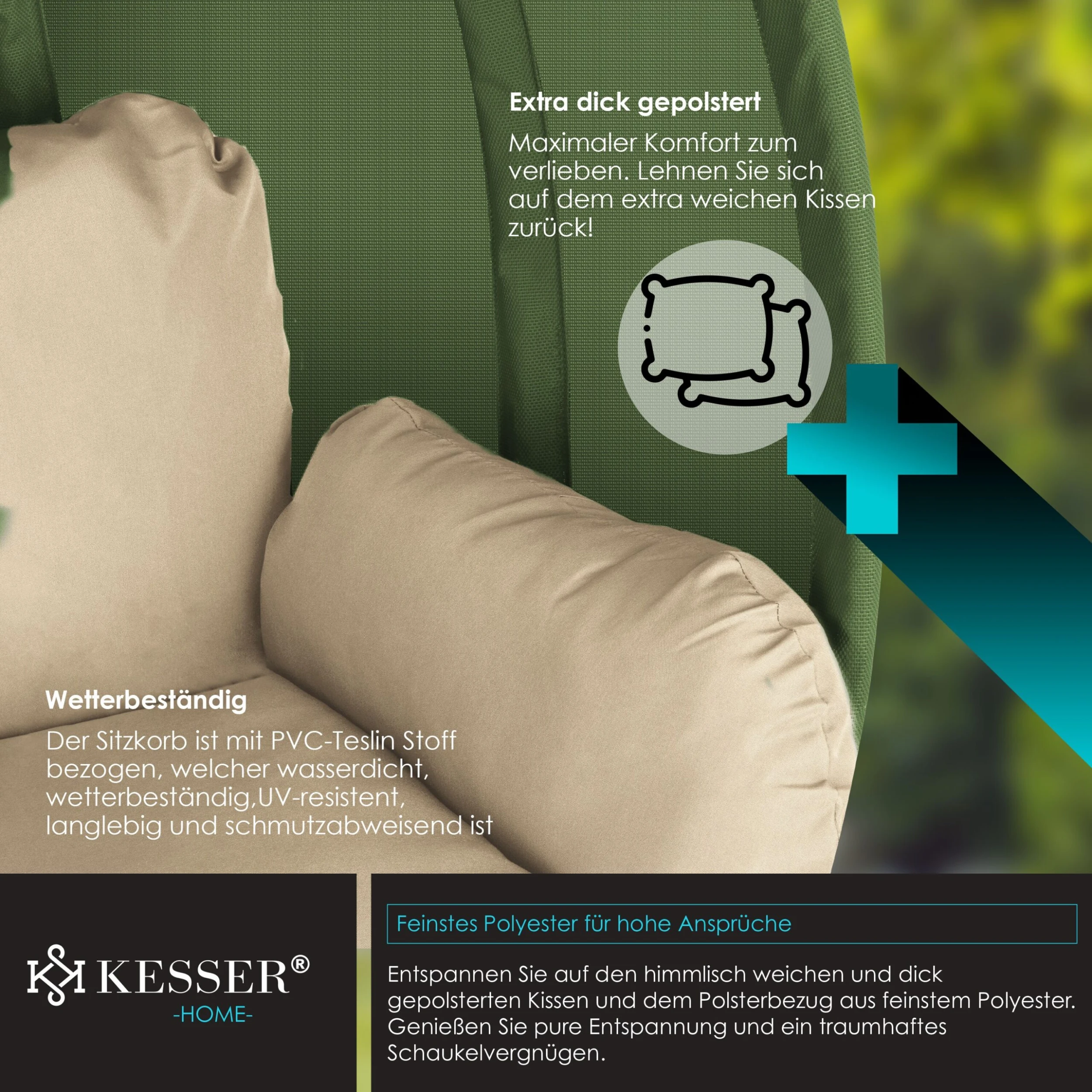 KESSER Luxe Hängestuhl aus robustem, stabilem Stahlrohr und hochwertiger Pulverbeschichtung, langlebiger Nutzungsdauer, Sitz-Korb aus PVC-Teslin-Stoff mit extra dicken Kissenpolstern aus weicher Baumwolle