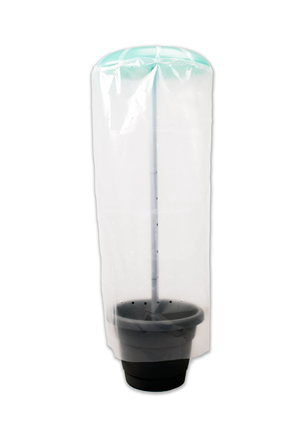Farbe: Pflanztopf und Stab Grau; Tomatenhut: Grün; Folie: Klar.