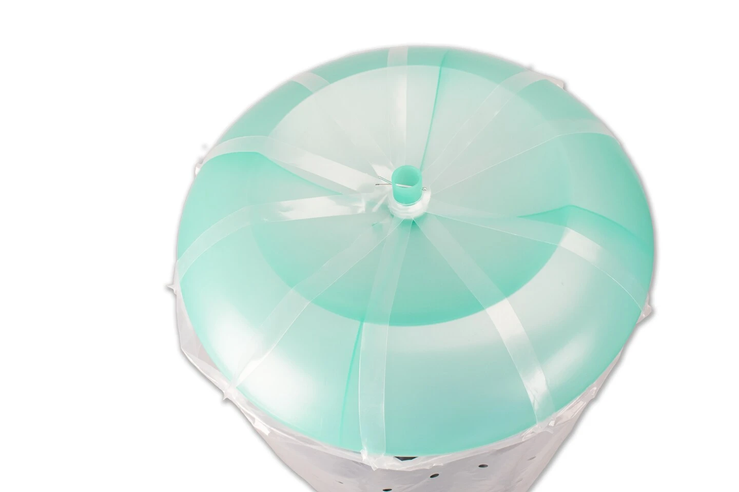 Der mitgelieferte Schlauch wird an der Unterseite des Tomatenhutes befestigt und führt so das gesammelte Regenwasser auf das Erdreich ab, ohne dass die Blätter der Pflanze nass werden.