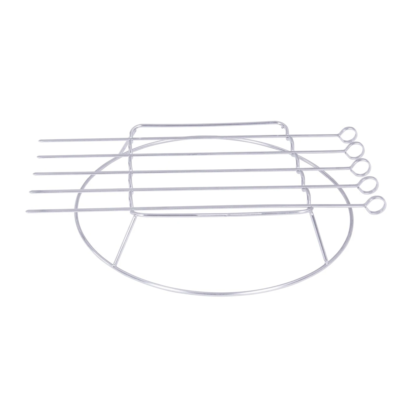 - Runder Grillspießaufsatz, inclusive 5 Grillspieße, beides aus Edelstahl