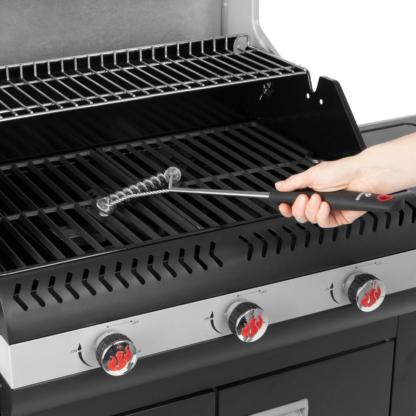 Von der langlebigen Edelstahlspule der Grillrost-Reinigungsbürste bricht selbst bei intensivem Schrubben nichts ab, sondern sie gibt dem Grillrost-Schmutz keine Chance. - Da lässt das nächste Barbecue bestimmt nicht mehr lange auf sich warten.