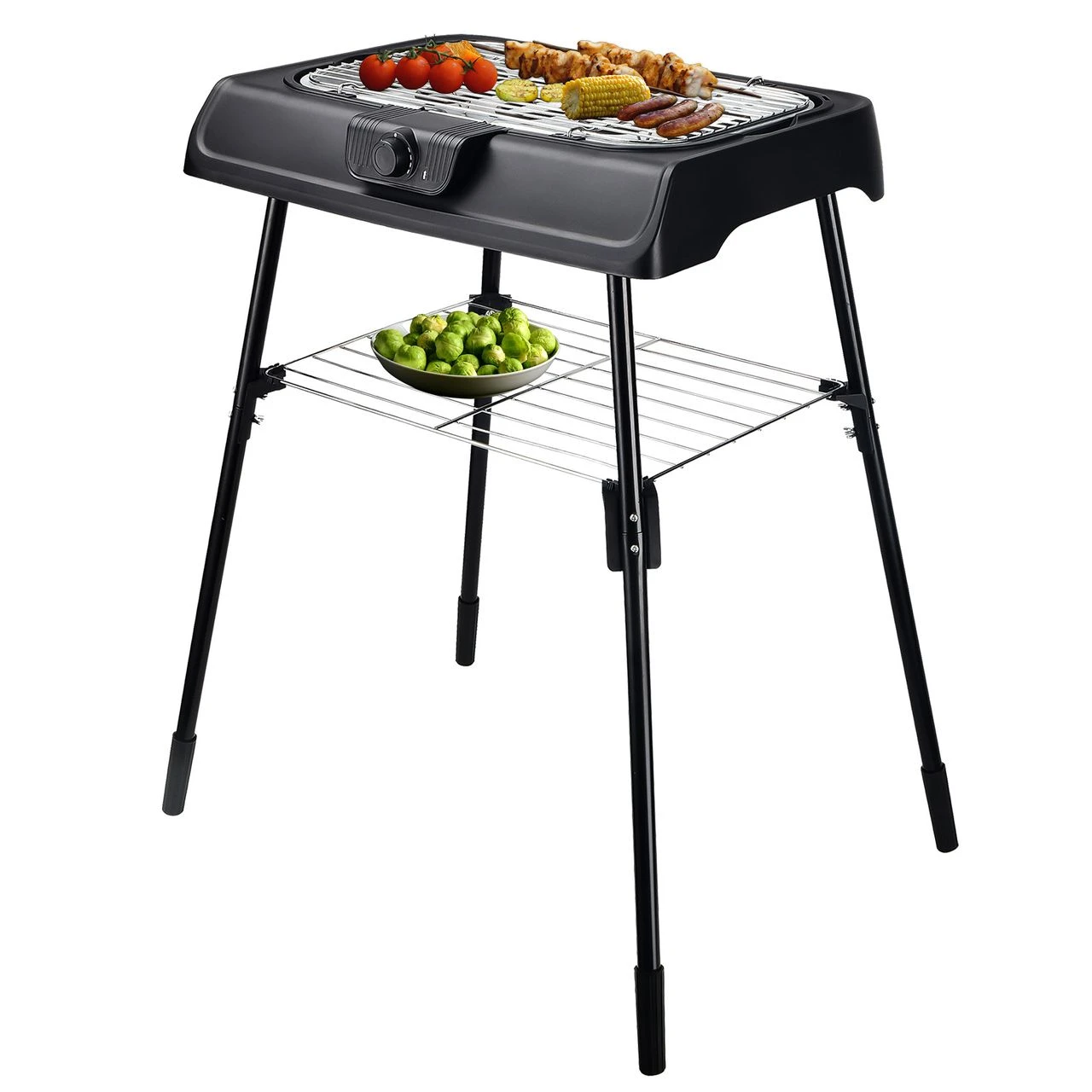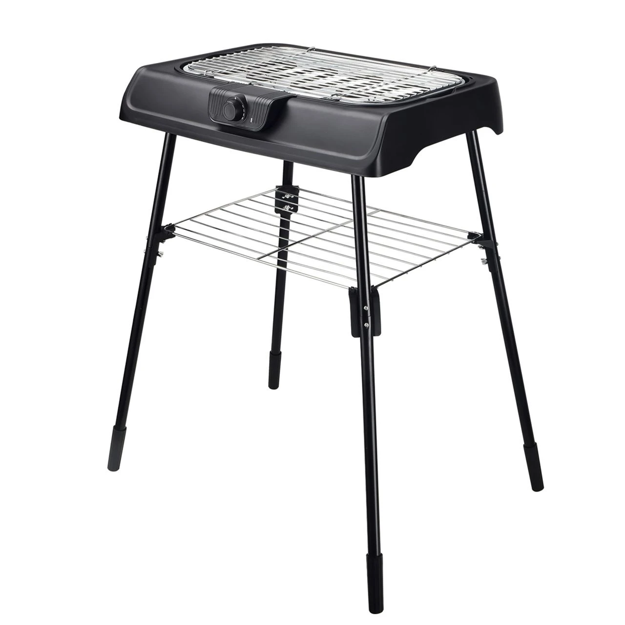 Elektro Tisch- und Standgrill, auch als einfacher Tischgrill verwendbar, geringe Rauch- und Geruchsentwicklung durch mit Wasser befüllbare Grillwanne und Kunststoff-Stahlgehäuse,