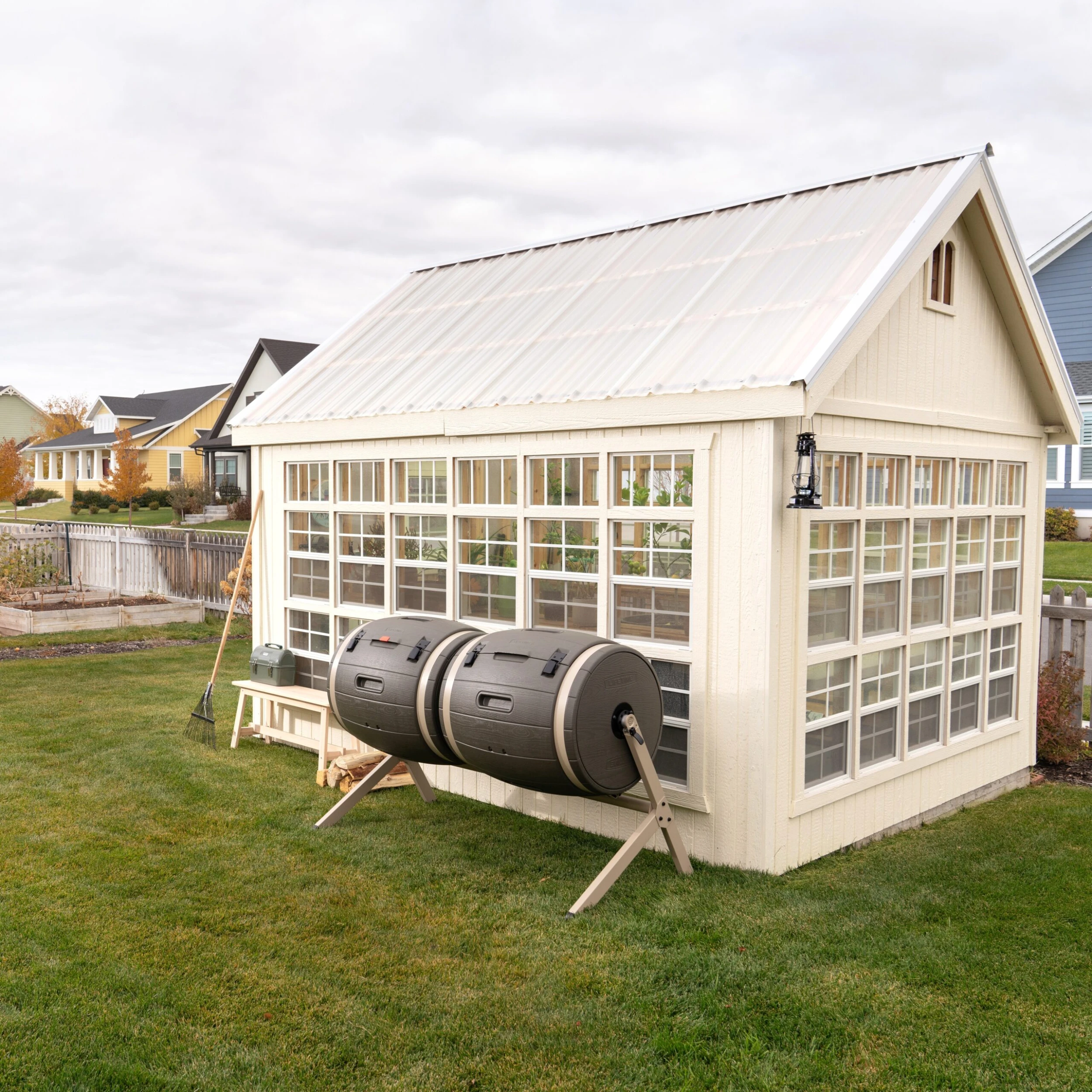 Äußerst stabile und wetterfeste Ausführung aus UV-beständigem und recycelbarem Kunststoff mit pulverbeschichtetem Stahlgestell für sicheren Stand und Schutz vor Nagetieren. Einschließlich genauer Kompostieranleitung geliefert. Leichter Zusammenbau. 5 Jahre Garantie.