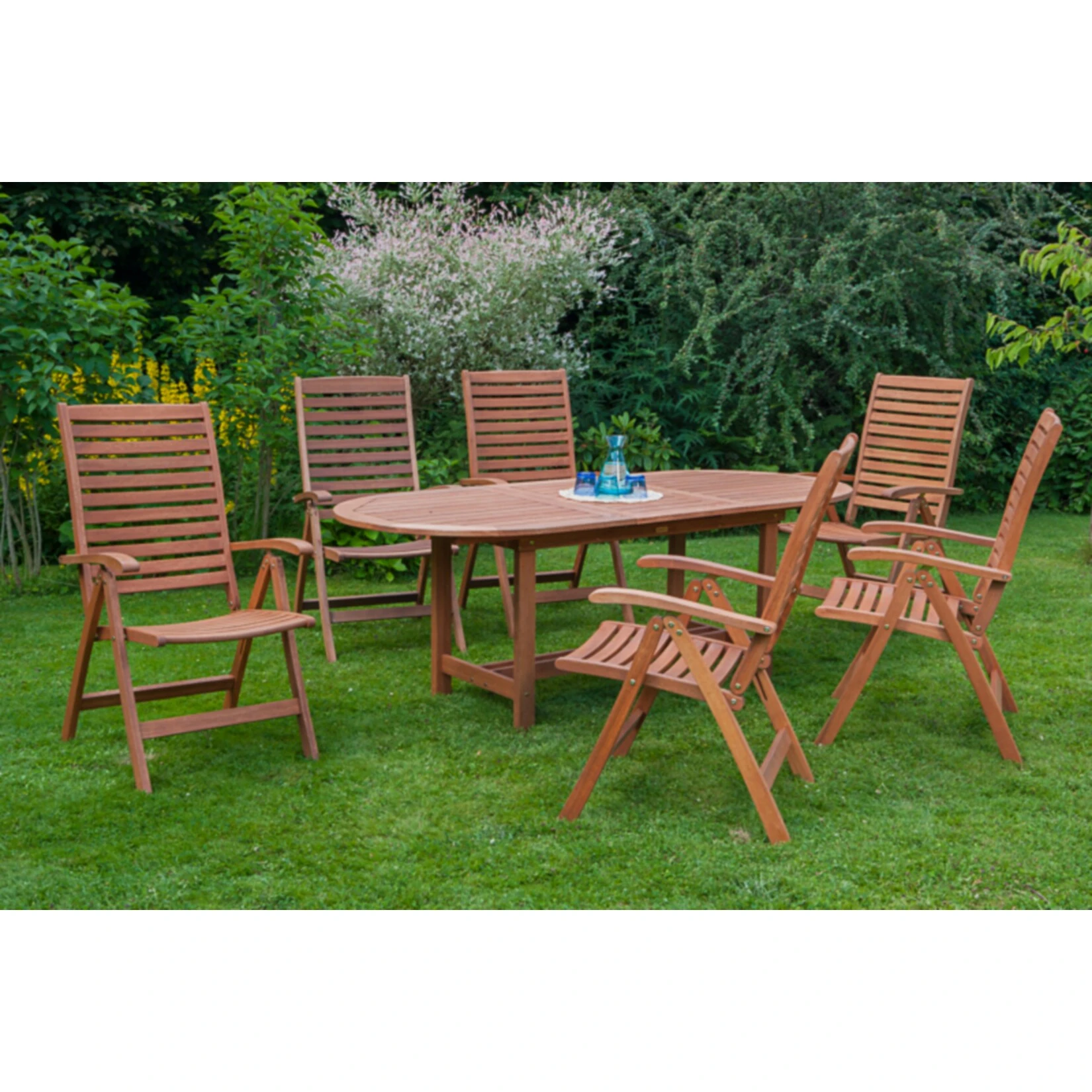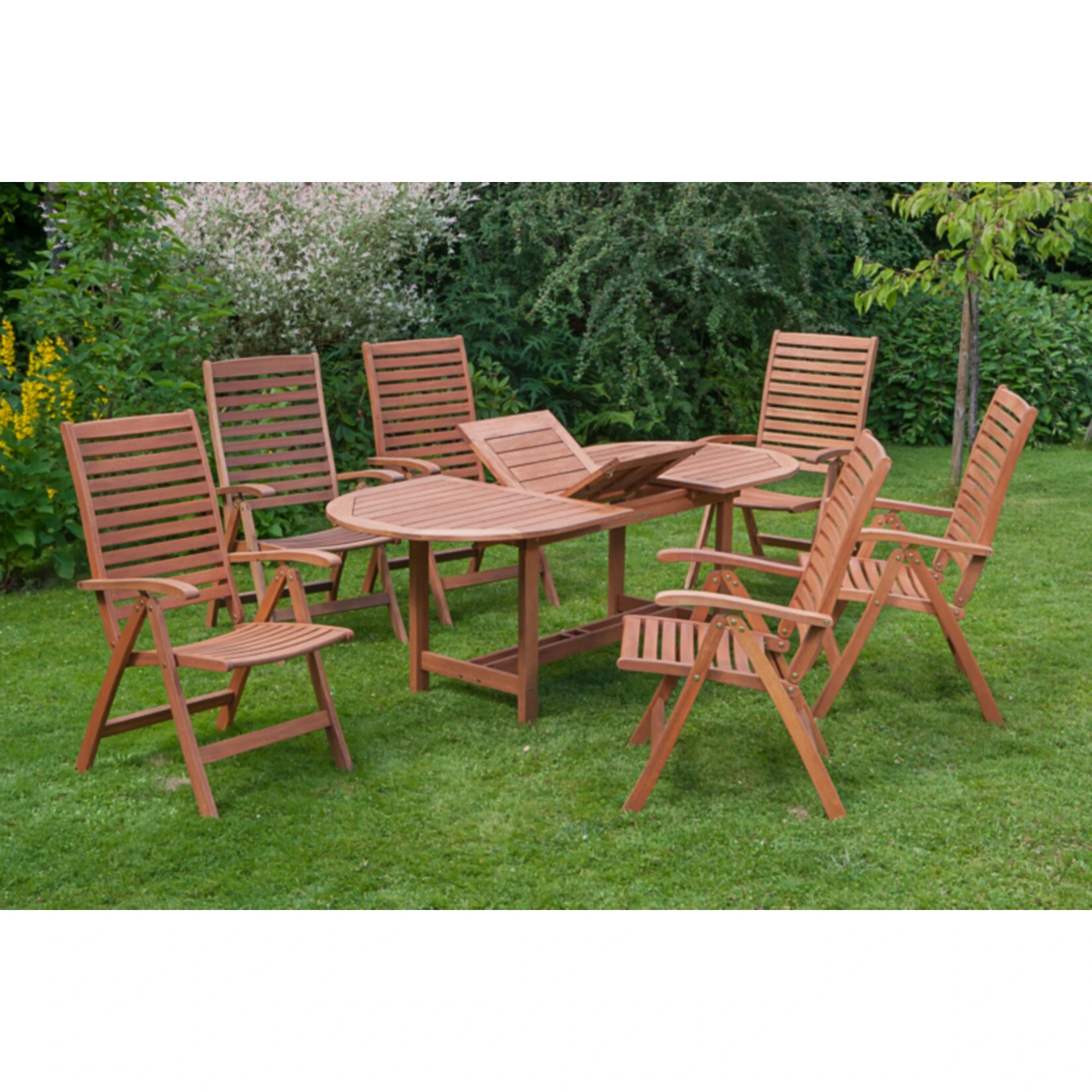 - 1 ovaler Ausziehtisch und 6 Klappsesseln