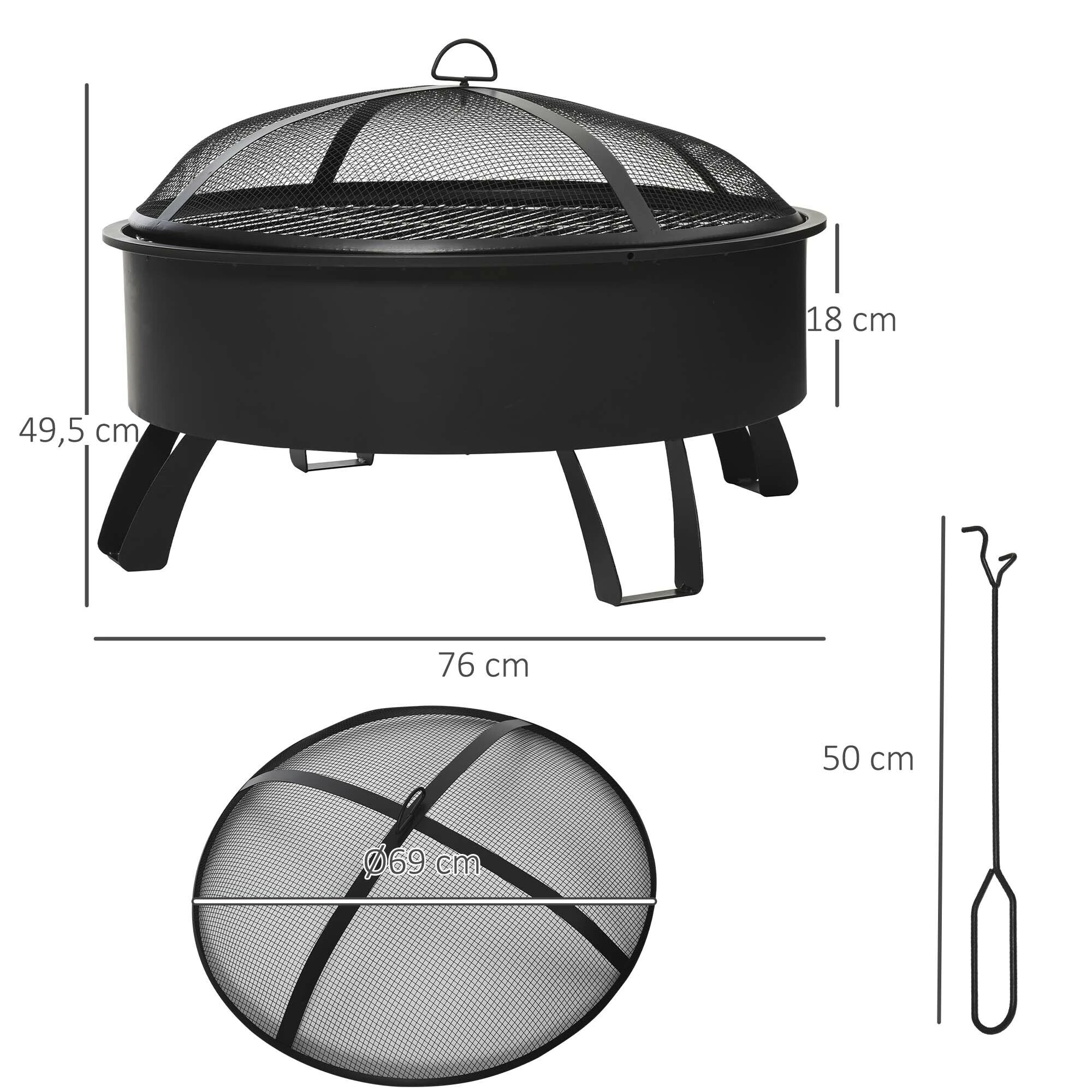 - Maße: Deckel: Ø69 cm, Grillrost: Ø68 cm, Feuerschale: 50L x 5B x 18H cm