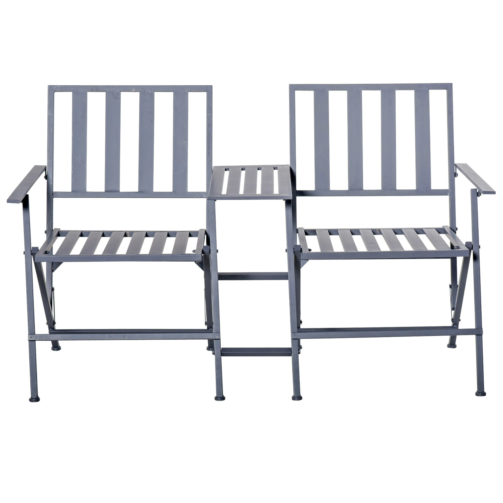 Machen Sie Ihren Außenbereich mit diesem dekorativen Gartenstuhl zum Wohlfühlparadis. Dieser 2-Sitzer Stuhl ist aus langlebigem Stahl gefertigt, robust und dennoch bequem für Sie in der Sonne zu entspannen. Das Lattenrost-Design sorgt für Eleganz und einen modischen Look, der perfekt zu jeder Außendekoration passen wird. Der Mini-Kaffeetisch zum Abstellen Ihrer Getränke oder Bücher ist praktisch zwischen den Stühlen verbaut. Verleihen Sie Ihrem Garten einen Hauch von Klasse mit diesem schönen-Terrassenstuhl.