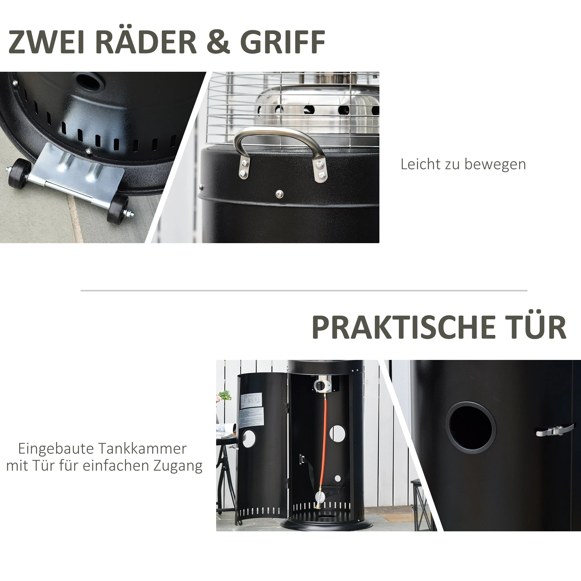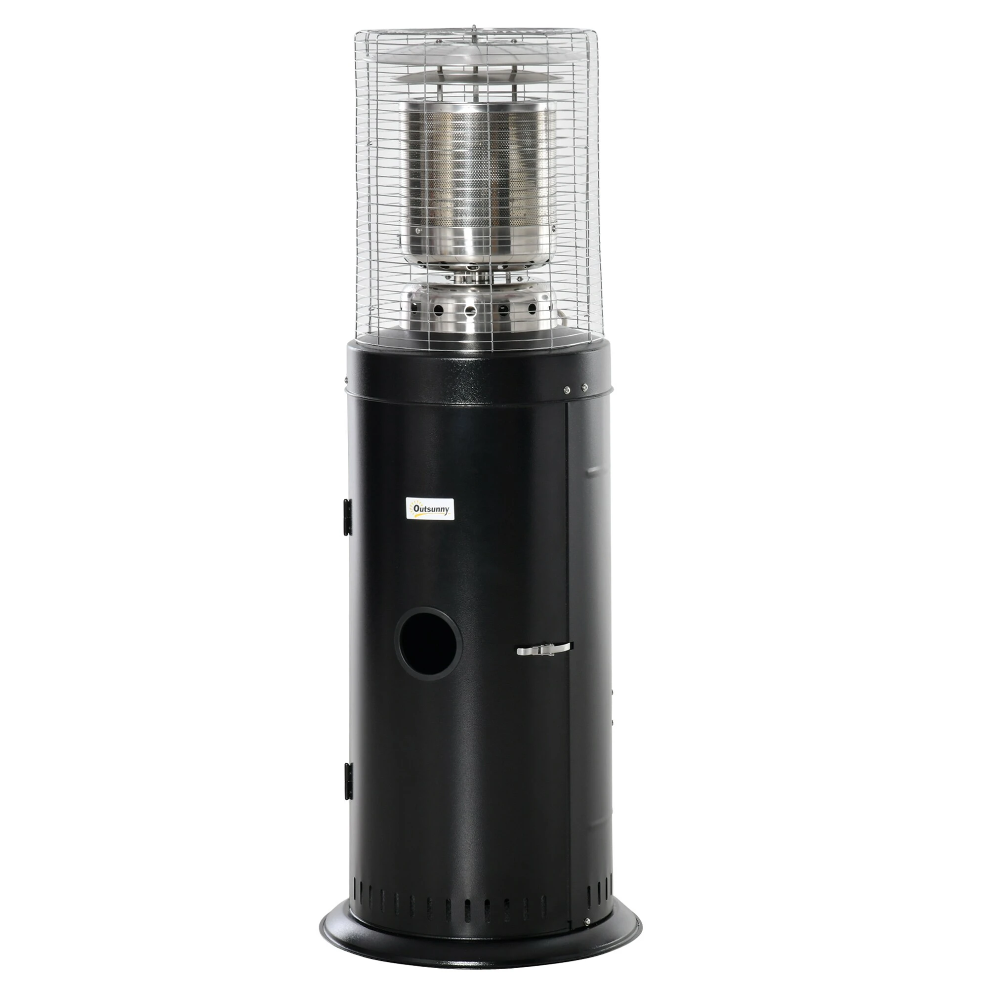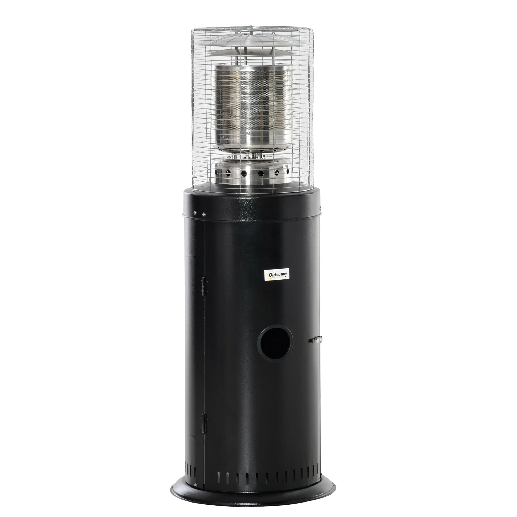 Dieser frei stehende Terrassenheizer von Outsunny wird aus massivem Metall und Edelstahl hergestellt. Der Heizstrahler wird kann mit Propan, Butan oder Flüssiggas betrieben und kann mit dem Drehknopf zwischen hoher Temperatur und niedriger Temperatur eingestellt werden, sodass Sie selbst bestimmen können, wie warm Sie es haben möchten. Zwei Räder sorgen für eine einfache Bewegung, ein Kippschutz und ein automatische Sicherheitsabschaltung für mehr Sicherheit.