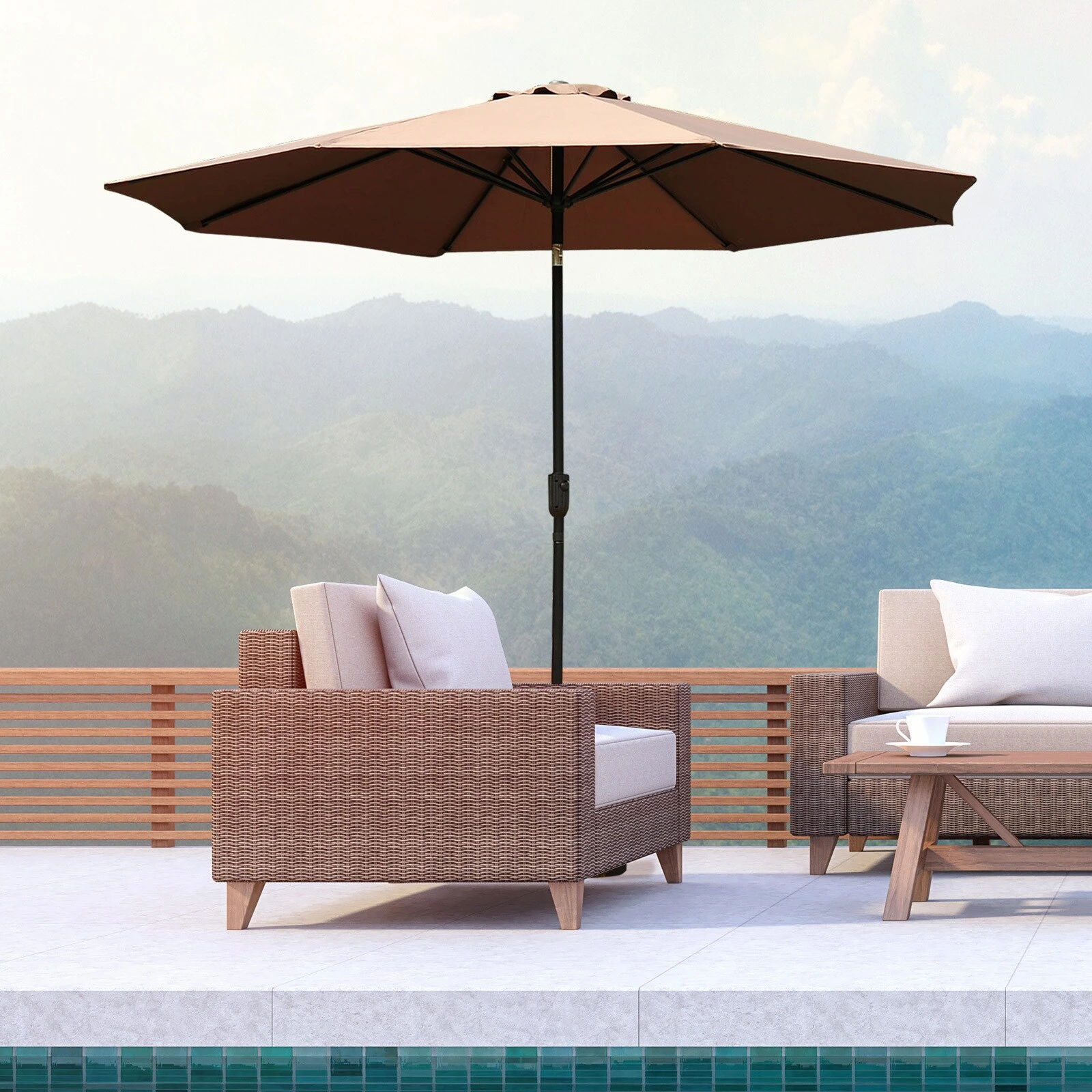 - Lieferumfang: 1 x Sonnenschirm (ACHTUNG: Der abgebildete Schirmständer ist nicht im Lieferumfang enthalten.)