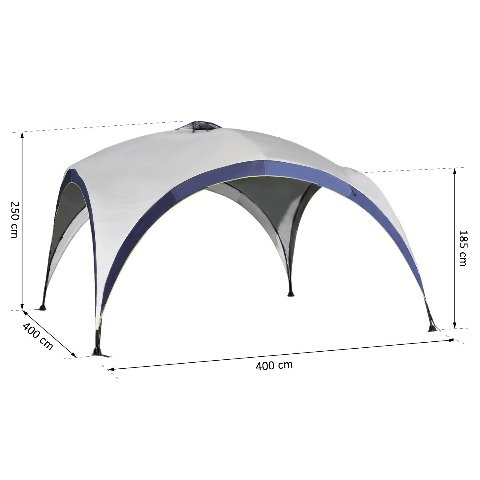 - Lieferumfang: 1 x Gartenzelt (inkl. 24 Heringe, 8 Abspannseile, 1 Tragetasche)