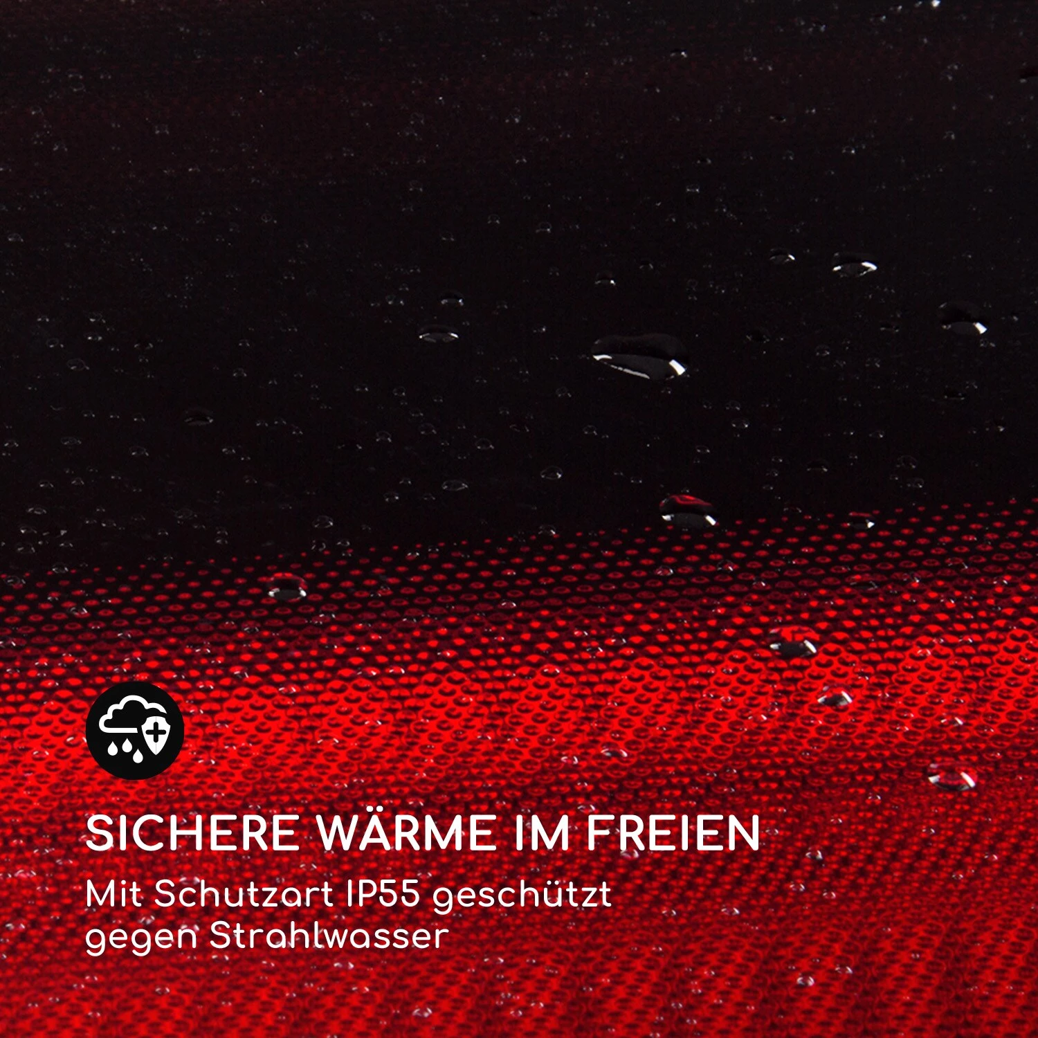 - Sichere Wärme im Freien: mit Schutzart IP55 geschützt gegen Strahlwasser