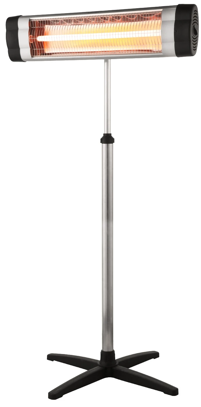 Die Montage kann entweder an der Wand (Zubehör im Lieferumfang enthalten) oder über die höhenverstellbare Standaufstellung erfolgen. Durch den verstellbaren Neigungswinkel und die stufenlose Wärmeregulierung kann die Wärme optimal an die individuellen Bedürfnisse angepasst werden.