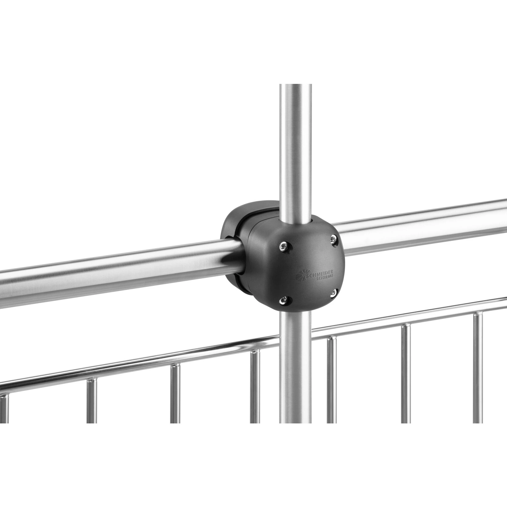 Beide Halbschalen werden durch vier Schrauben sicher geschlossen und fixieren somit Balkongeländer und Schirmstock gleichermaßen, ein Inbusschlüssel ist im Lieferumfang enthalten.