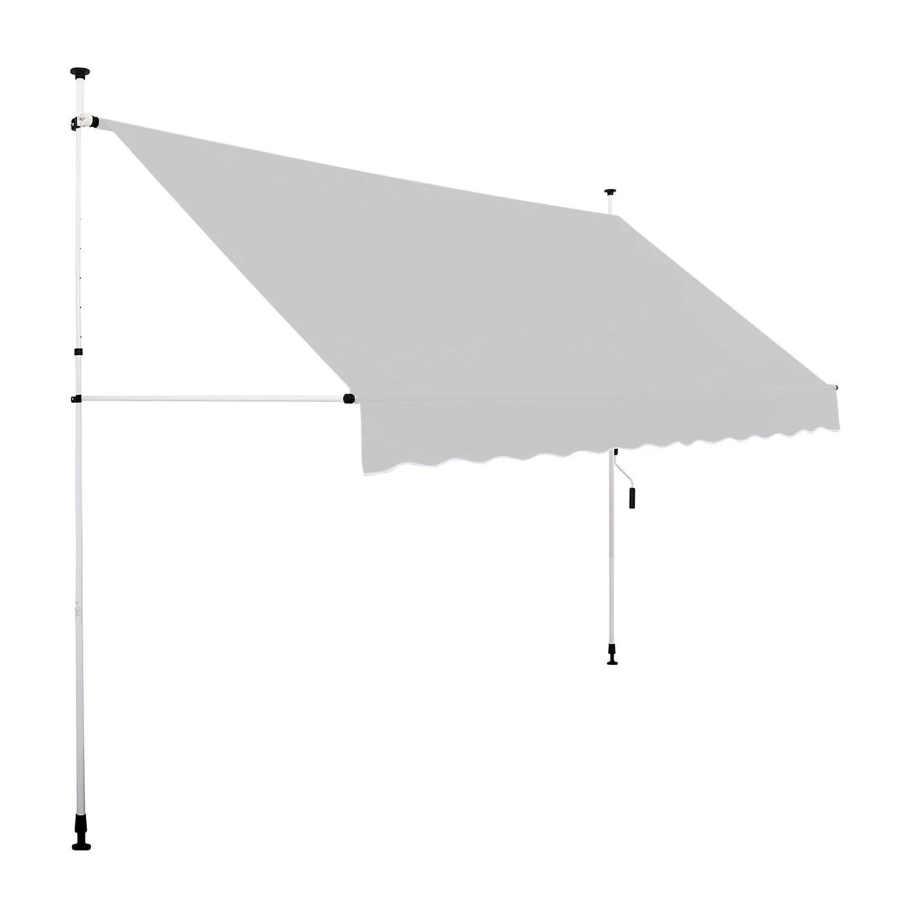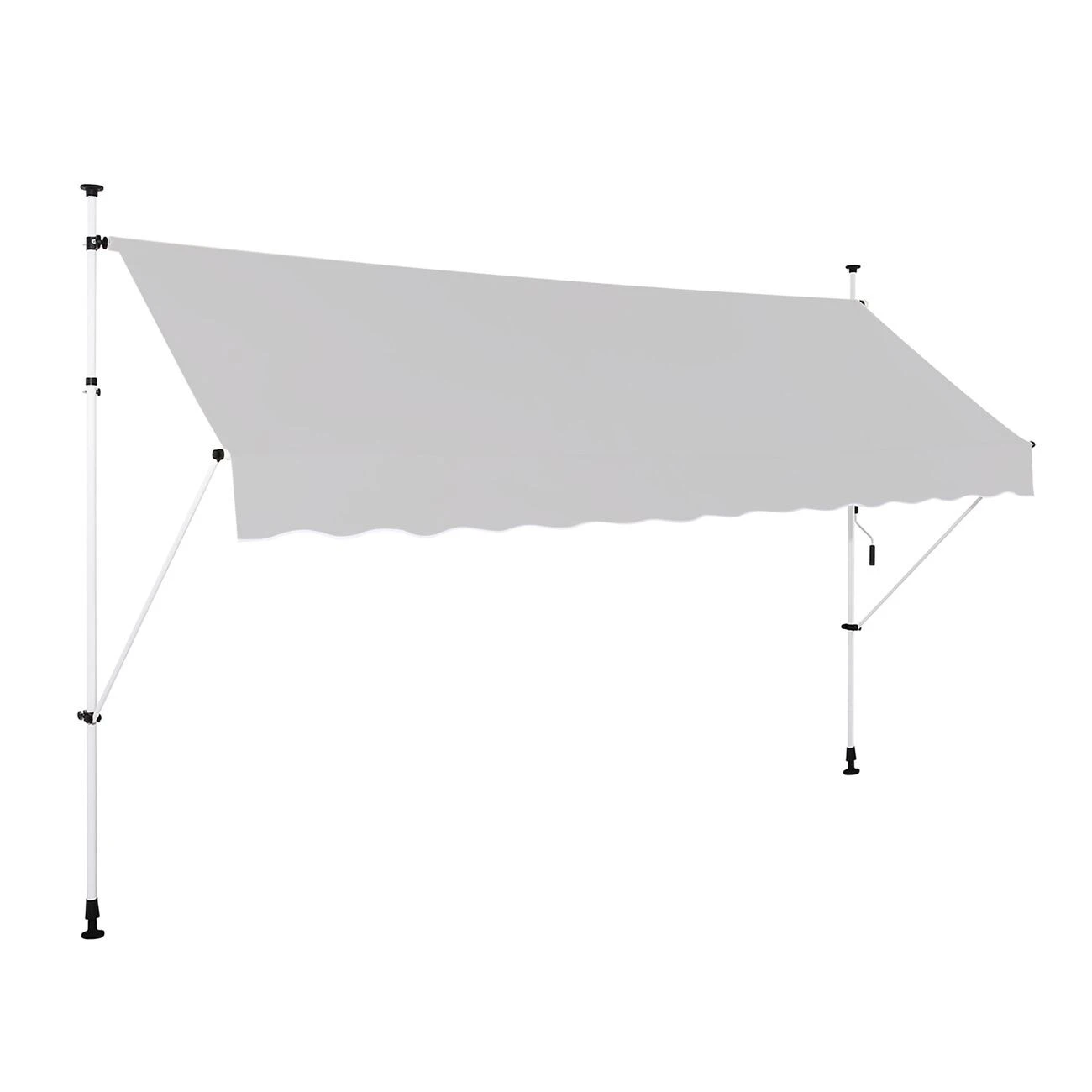 Im Vergleich mit fest installierten Markisen sichern Sie sich mit diesem Modell mehrere Vorteile. Sie bringen diese Markise im Handumdrehen an. Der wesentliche Schritt besteht darin, die beiden Teleskopstangen zwischen Boden und oberen Befestigungspunkten anzubringen. Die Länge der Teleskopstangen passen Sie mit minimalem Aufwand an. Nach dem Lockern der Schrauben sind sie problemlos aus- und einziehbar. Anschließend stellen Sie den Neigungswinkel ein, indem Sie die beiden Ausfallarme entsprechend verlängern oder verkürzen. Diese einfache Montage und Bedienung sind nennenswerte Pluspunkte. Sie entgehen unnötiger Arbeit, zudem beschädigen Sie Ihr Gebäude nicht. Darüber hinaus setzen Sie diese Klemmmarkise vielseitig ein. So können Sie diese im Campingurlaub für Ihr Wohnmobil nutzen, nach der Heimkehr wieder als Terrassen- oder Balkonmarkise.