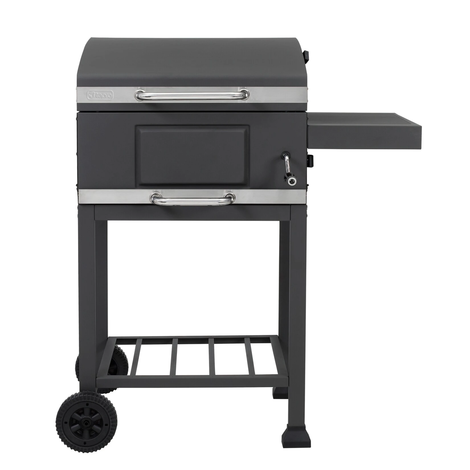 - emaillierte Holzkohlenwanne, mittels Kurbel höhenverstellbar