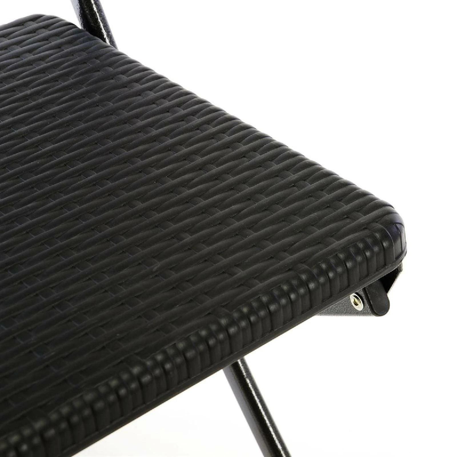 Schickes Stuhlset aus Kunststoff, verarbeitet mit einer edlen Rattan-Optik in schwarz. Einfach aufzuklappen und somit überall einsetzbar. Egal ob auf dem Balkon, der Terrasse oder im Garten. Gemütlichen Stunden im Freien steht hier nichts im Weg. Natürlich können Sie die Stühle aber auch in den eigenen vier Wänden einetzen, die Füße sind mit Gummischonern versehen. Robost, stabil und pflegeleicht. Verschmutzungen können mit einem feuchten Tuch einfach abgewischt werden. Werden die Stühle nicht mehr benötigt lassen sie sich im Handumdrehen zusammenklappen und platzsparend verstauen.