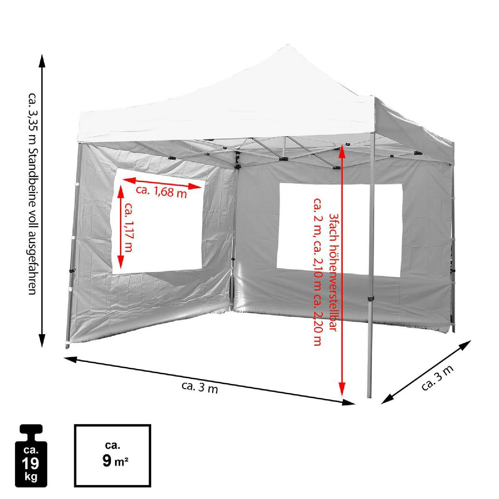 - Modellbezeichnung: Falt Pavillon 3x3m weiß+2 Seitenteile
