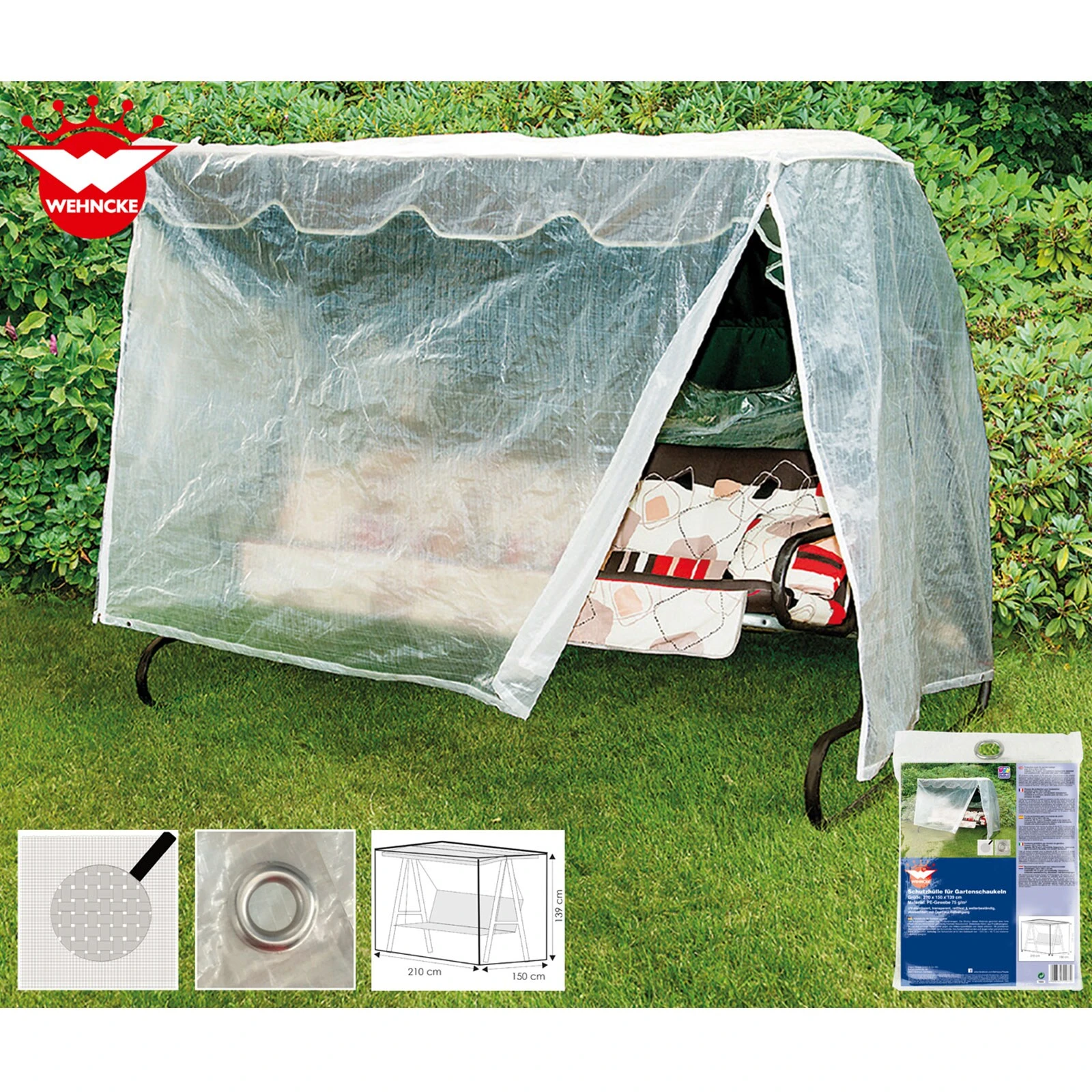 Die Hülle verfügt über praktische Ösen zum leichten Befestigen und ist geeignet für Temperaturen von -15°C bis +40°C. Ihre Gartenschaukel wird sich so länger halten und ist jederzeit sofort zu benutzen.