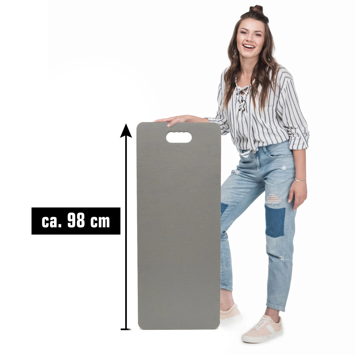 Das große Polster ist ideal als Kniekissen, Werkstattmatte, Sitzkissen… sogar als Bodenpad beim Sport: 1 Matte für alles.