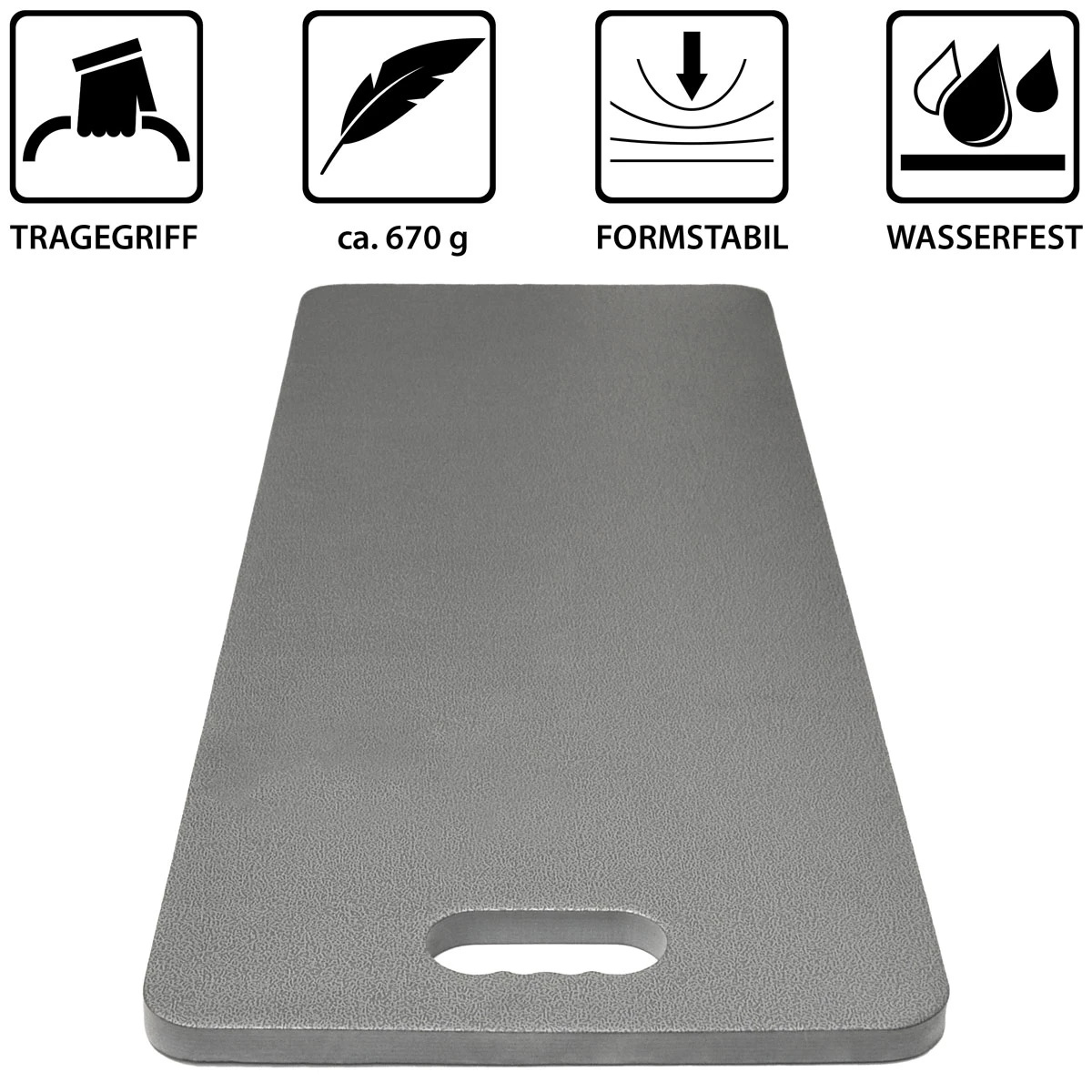 Durch das hochdichte Material nimmt die Matte keine Flüssigkeit auf – perfekt für nassen Rasen. Du kannst das Polster ganz einfach reinigen, es ist selbstverständlich abwaschbar.